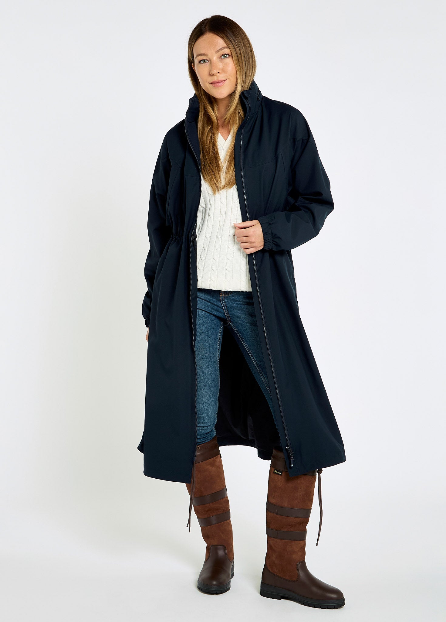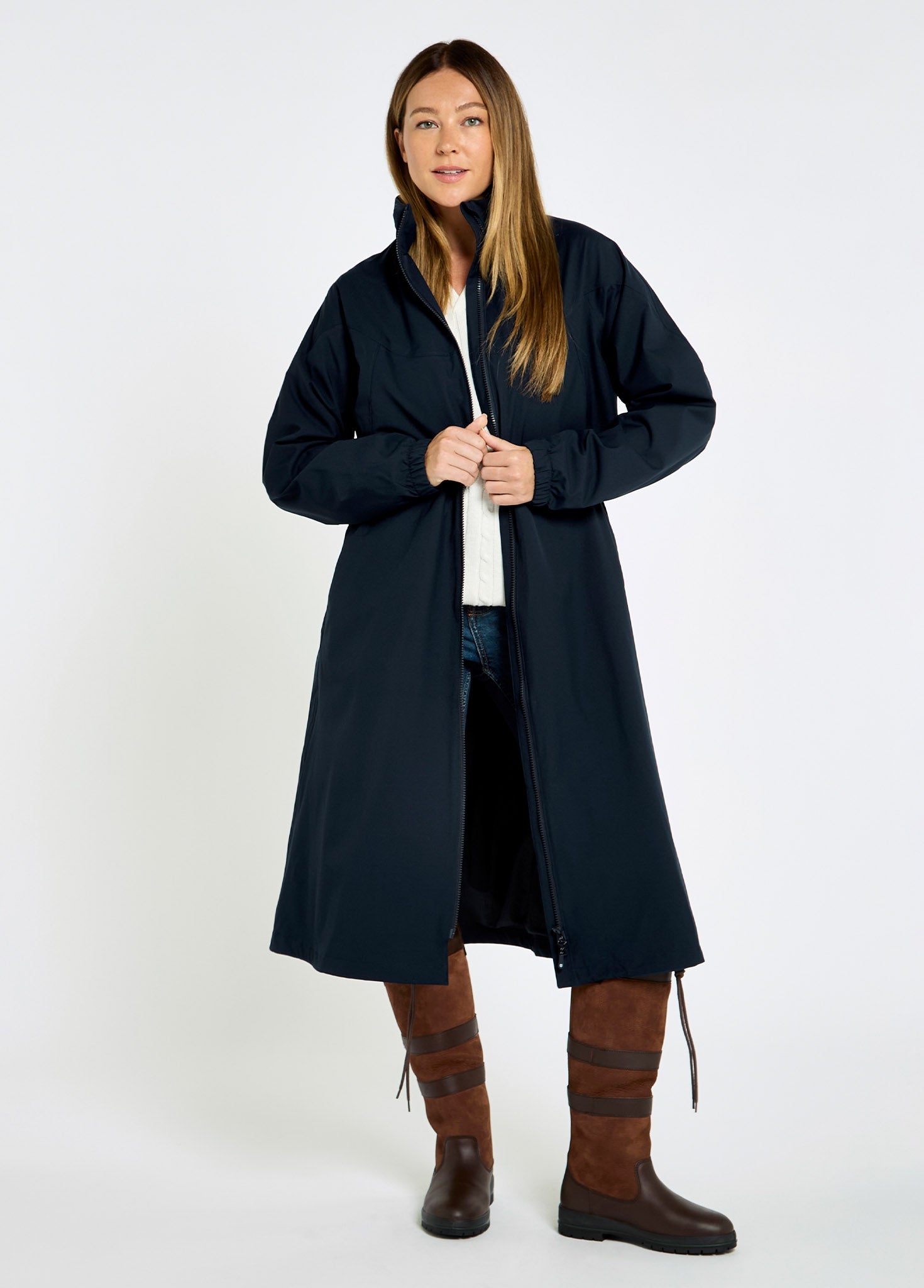 On a damp spring day, our Sandycover is a your new go-to. The full-length polyester with a durable water repellent finish and taped seams, is both dry and breathable. A drawstring waist gives custom fit and the two-way zip allows movement and access to underclothes quickly. If you’re taking on the weekend to-do list in town, you’re sports pitch supporting or tackling jobs at the stables, zip up, unpack your hood and keep dry during rainy day duties.